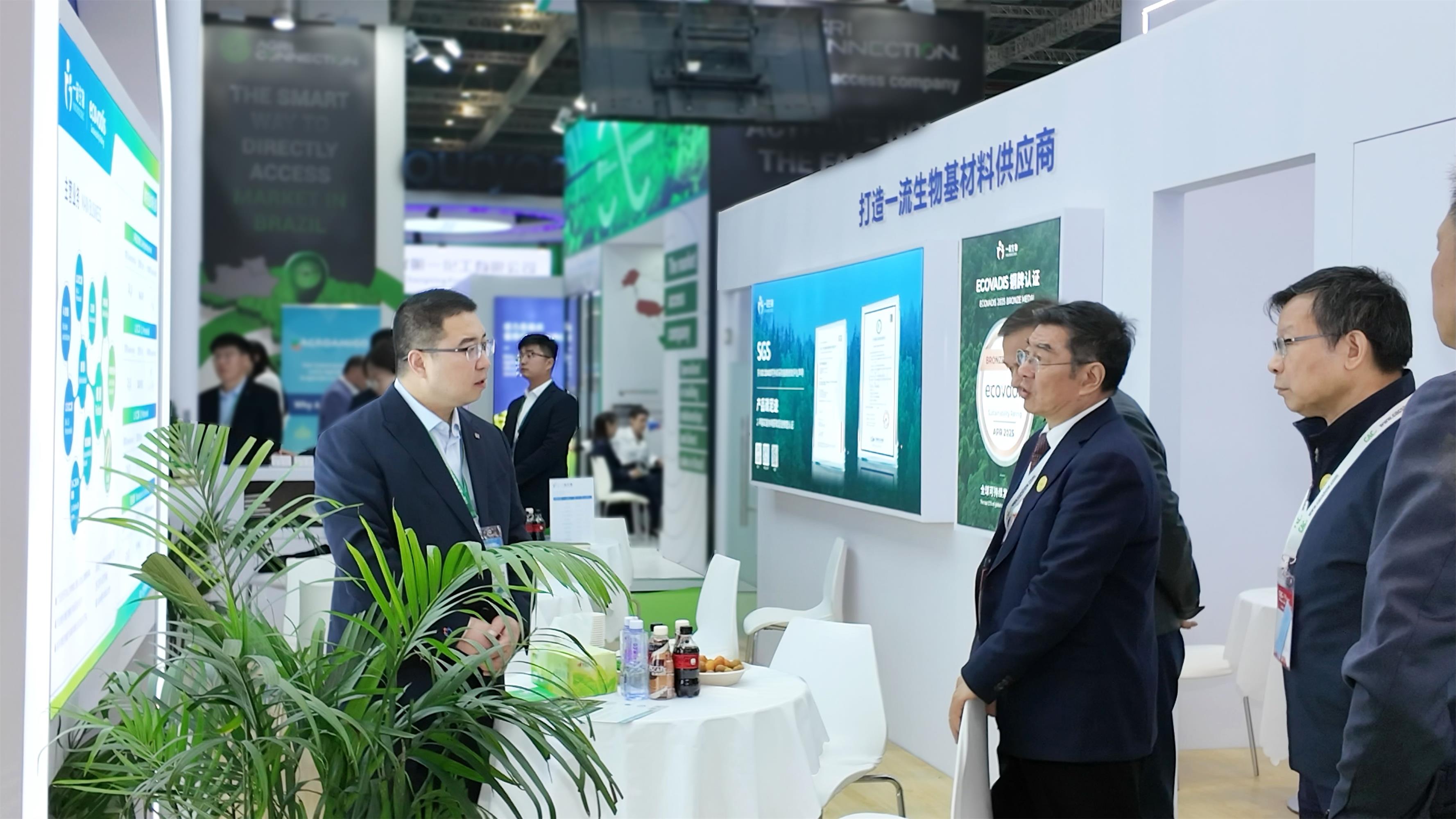 During the exhibition, representatives from the China Petroleum and Chemical Industry Federation visited the YINO Biologic booth and held discussions with our team on topics including green manufacturing, the development of the bio-based industry, and product applications. This further reflected the industry’s growing attention to sustainable manufacturing and the practical industrialization of bio-based solutions.