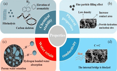 以往的研究表明,生物炭可作為水泥替代品用于生產(chǎn)膠凝材料,以減少資源消耗。生物炭不僅可以促進(jìn)自由水和結(jié)合水的釋放促進(jìn)水化作用還能作為細(xì)骨料,從而提高膠凝材料的綜合性能,擴(kuò)大其潛在應(yīng)用領(lǐng)域。